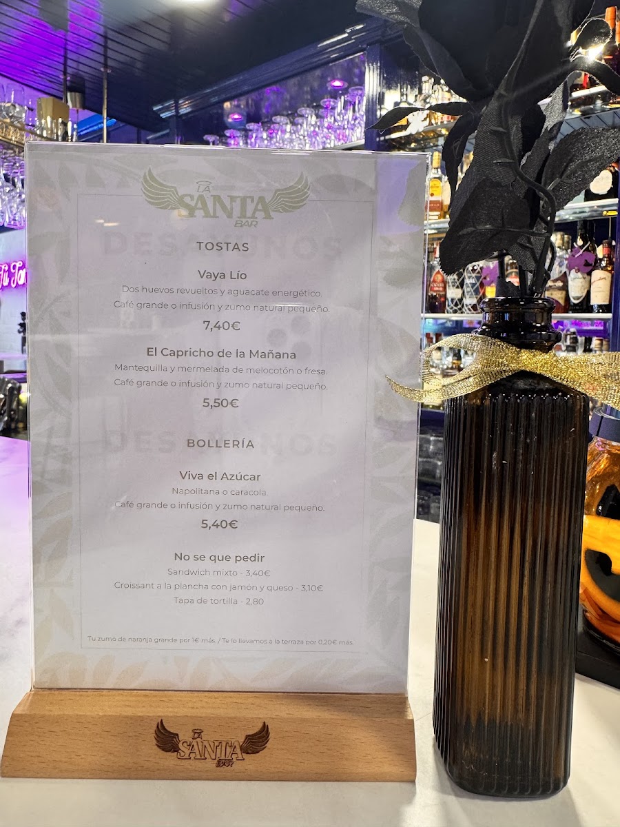 La Santa Bar Menu
